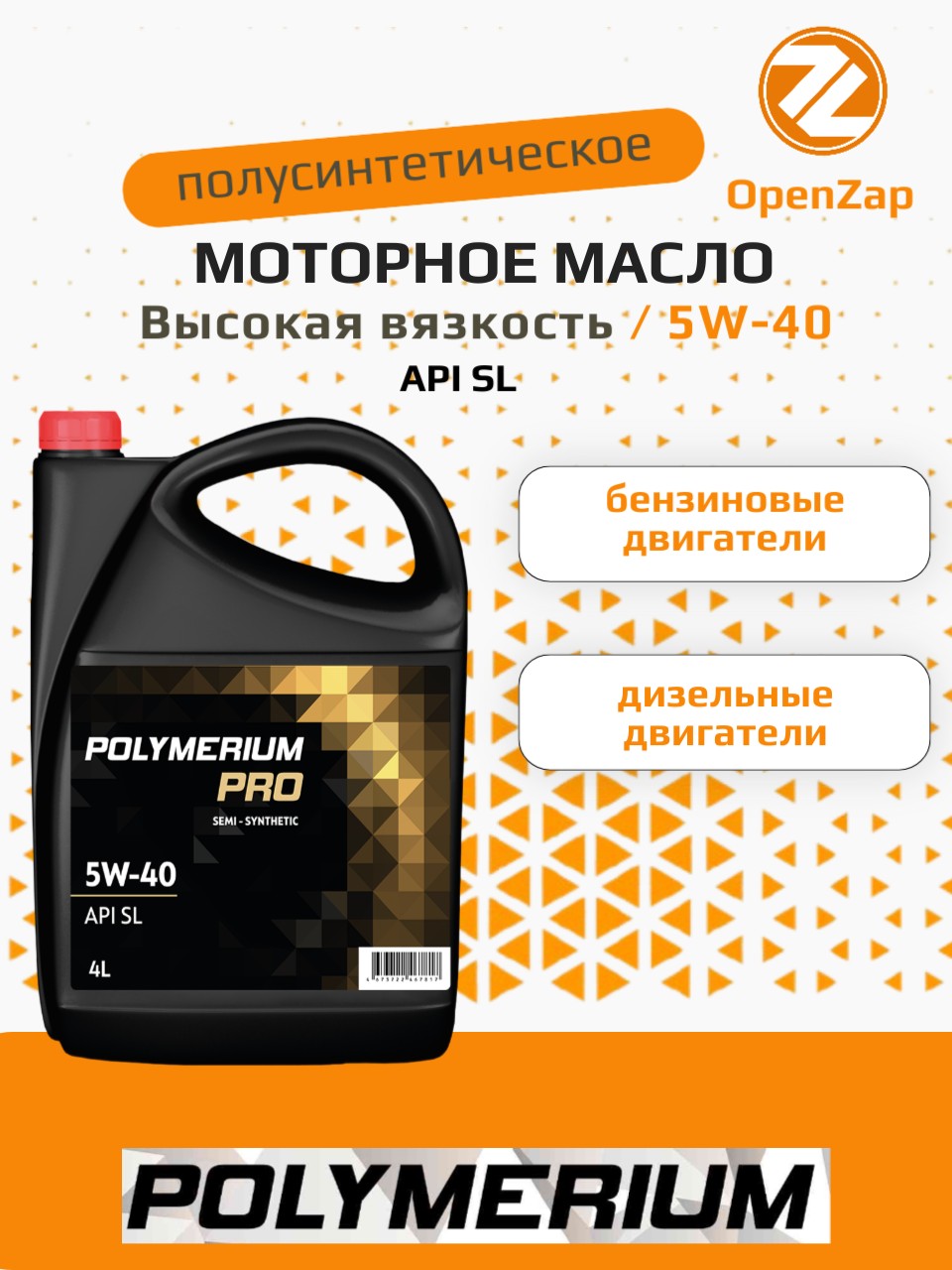 Полусинтетическое моторное масло PRO 5W-40 SL, 4 л. POLYMERIUM plmp540sg4