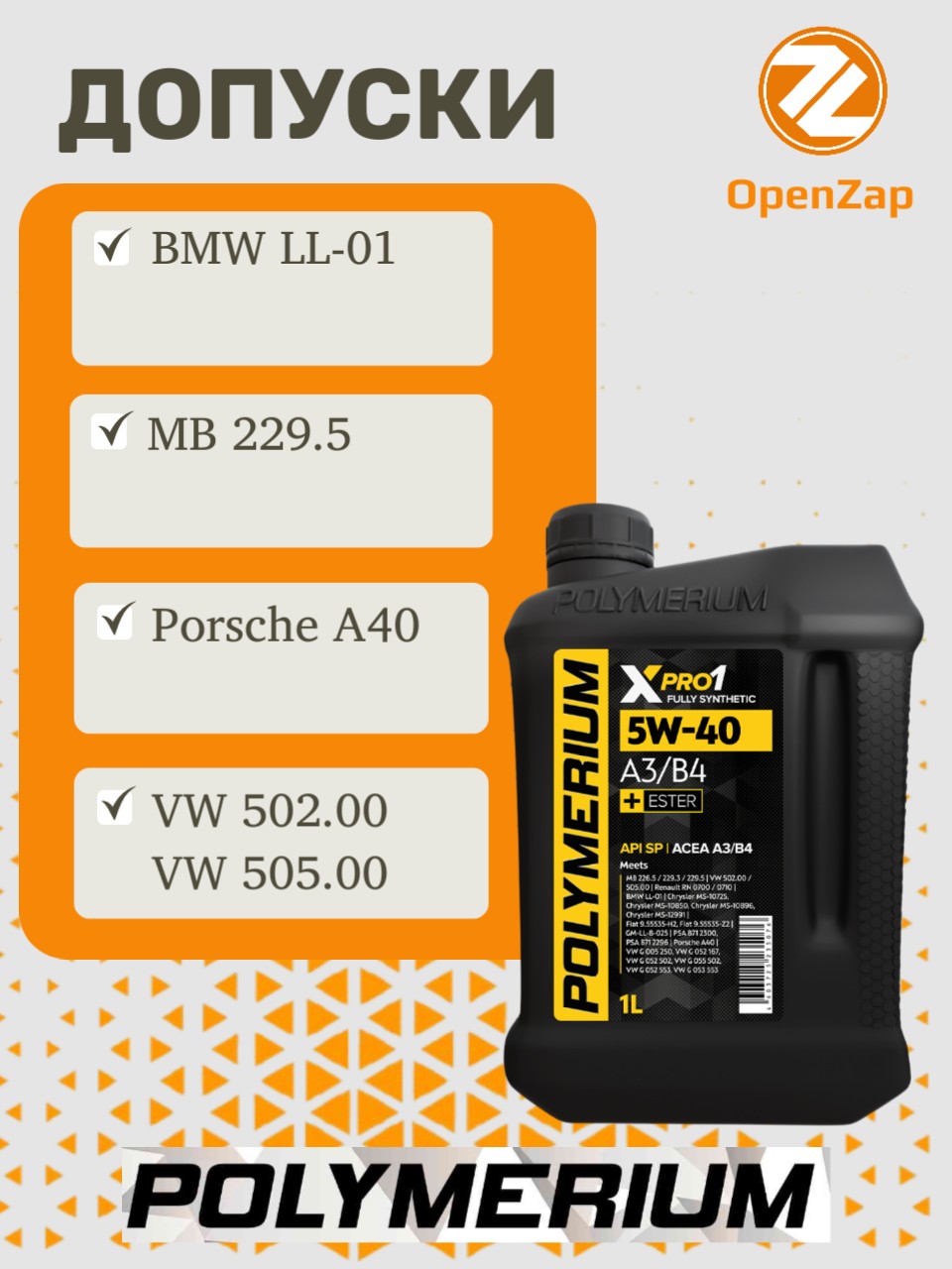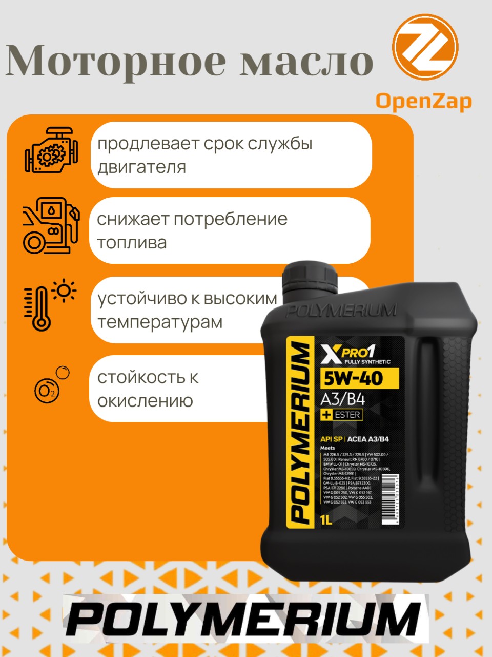 Синтетическое моторное масло XPRO1 5W-40, A3B4 1 л.
